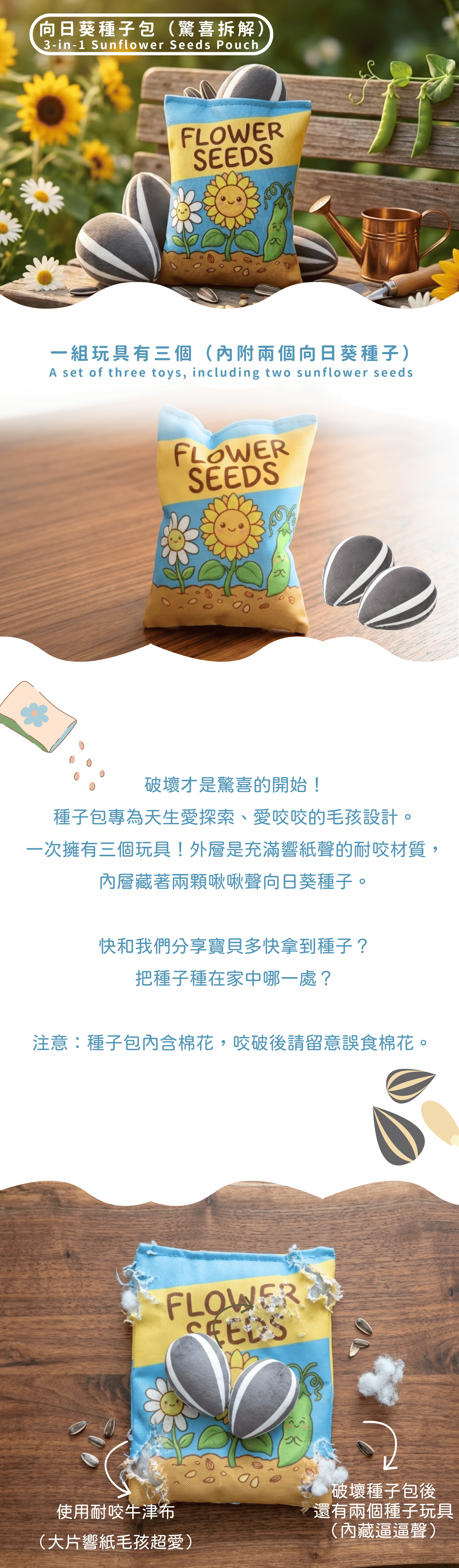 破壞才是驚喜的開始!種子包專為天生愛探索、愛咬咬的毛孩設計。