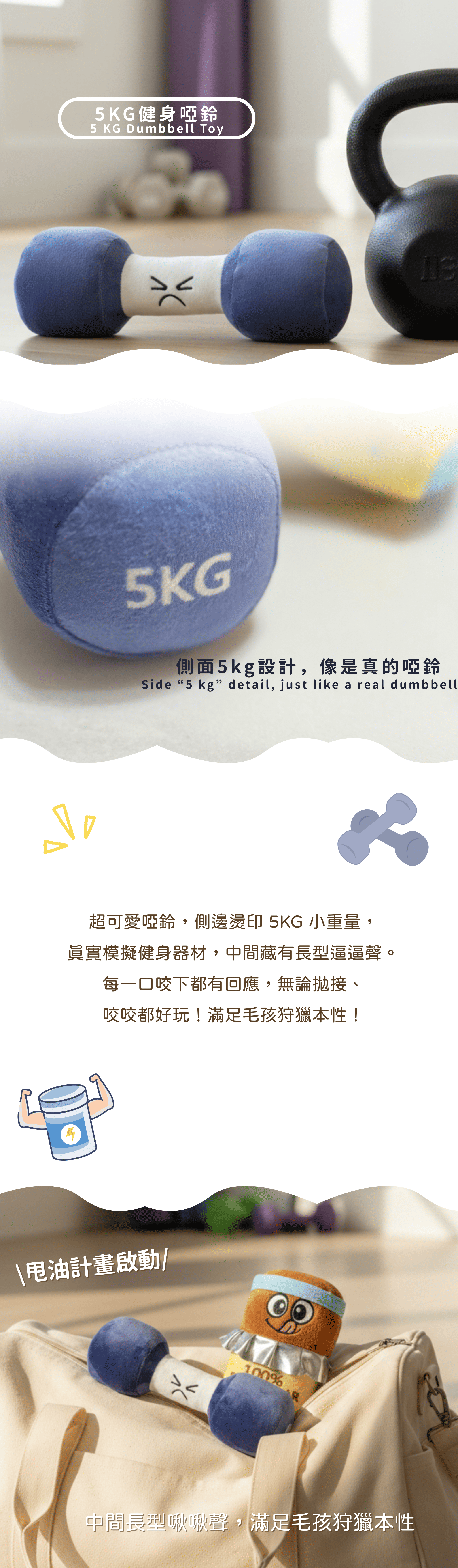 側邊兩面都有印刷5KG,中間長型啾啾聲