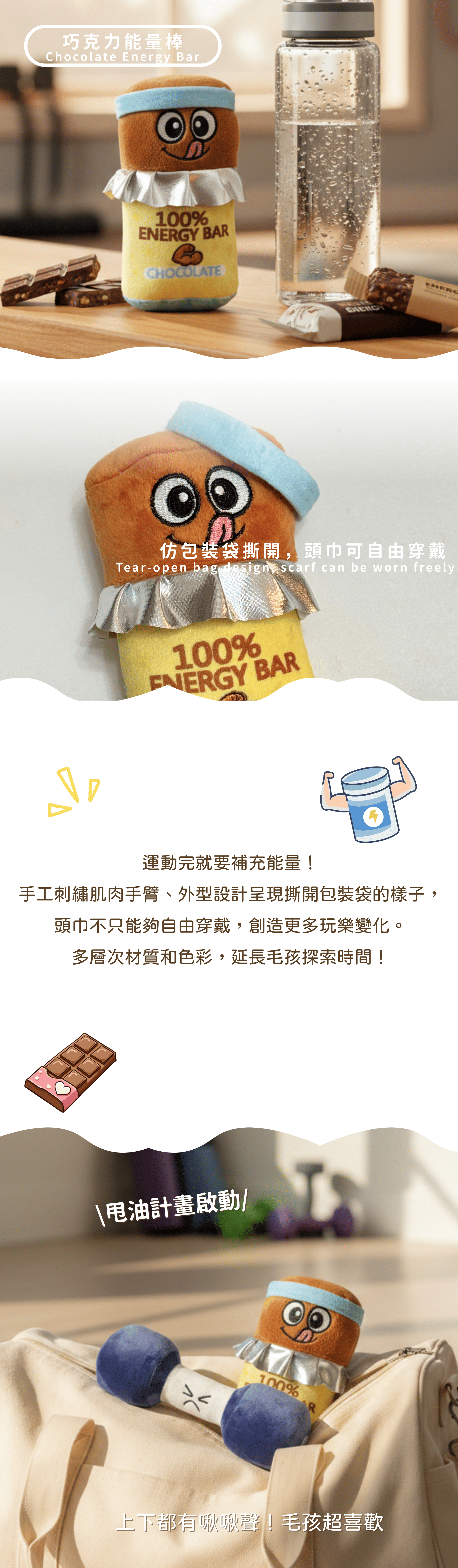 手工刺繡肌肉手臂、外型設計呈現撕開包裝袋的樣子,