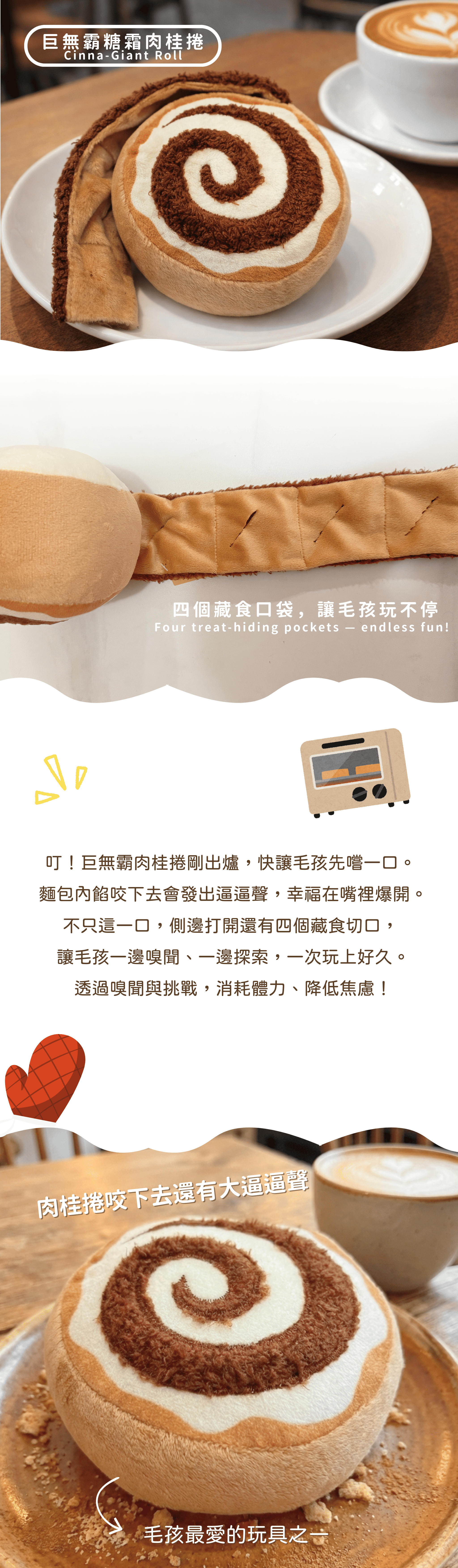 叮!巨無霸肉桂捲剛出爐,快讓毛孩先嚐一口。