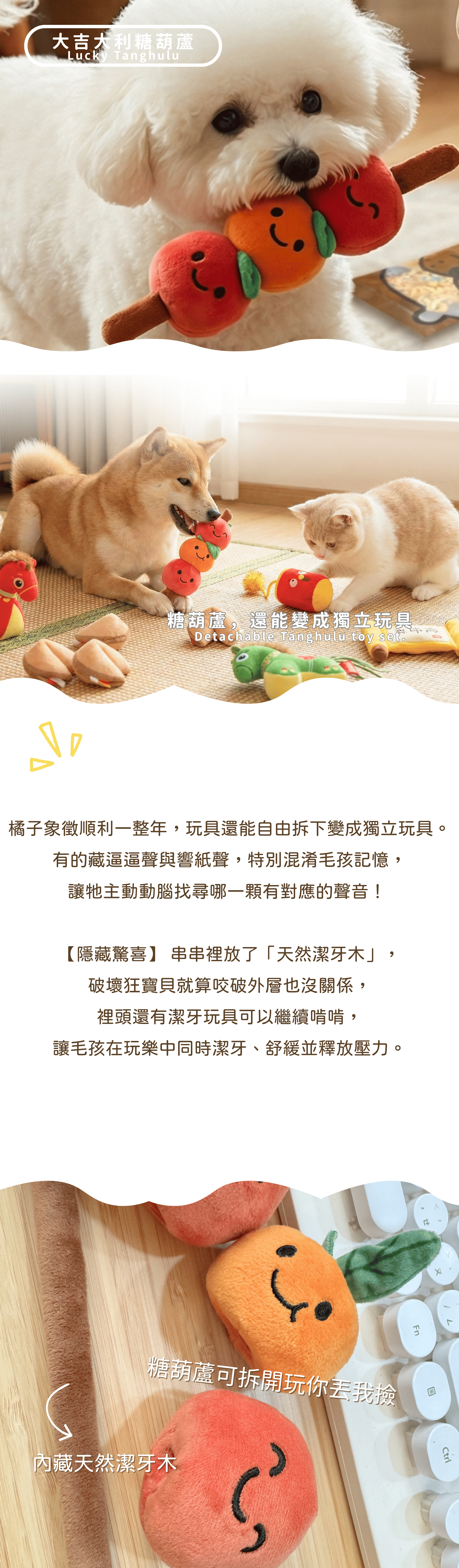 橘子象徵順利一整年,玩具還能自由拆下變成獨立玩具。有的藏逼逼聲與響紙聲,